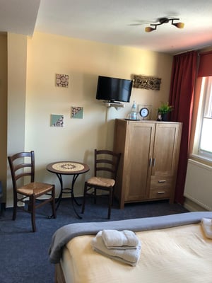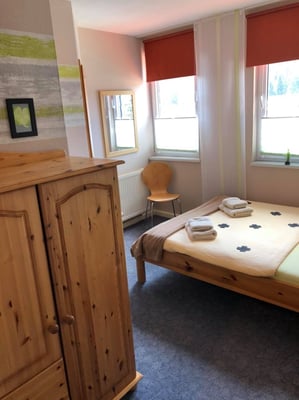 Das zweite unserer drei Standarddoppelzimmer: Der Fingerhut Das Zimmer (18m²) hat einen Blick auf die Brockenstrasse. Diese führt Sie direkt auf den höchsten Berg Norddeutschlands - den Brocken - mit 1142 Metern über dem Meeresspiegel.