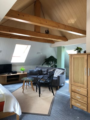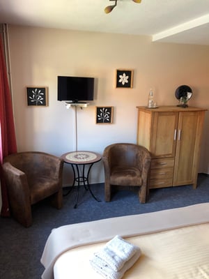 Das große Zimmer (38m²) befindet sich im Dachgeschoss der Pension. Hier haben Sie einen traumhaften Rundumblick in den Nationalpark Harz. Hier sieht man nicht nur den Wurmberg mit seiner Höhe von 971 Metern, sondern auch den kleinen Winterberg der zum Wandern einlädt.